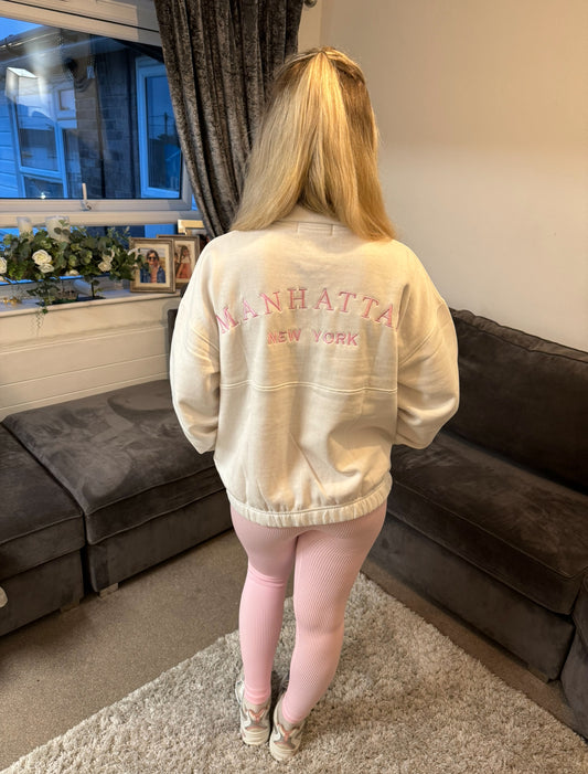 ACID WASH OVERSIZED BOMBER STYLE FLEECE ZIPPER CO-ORD