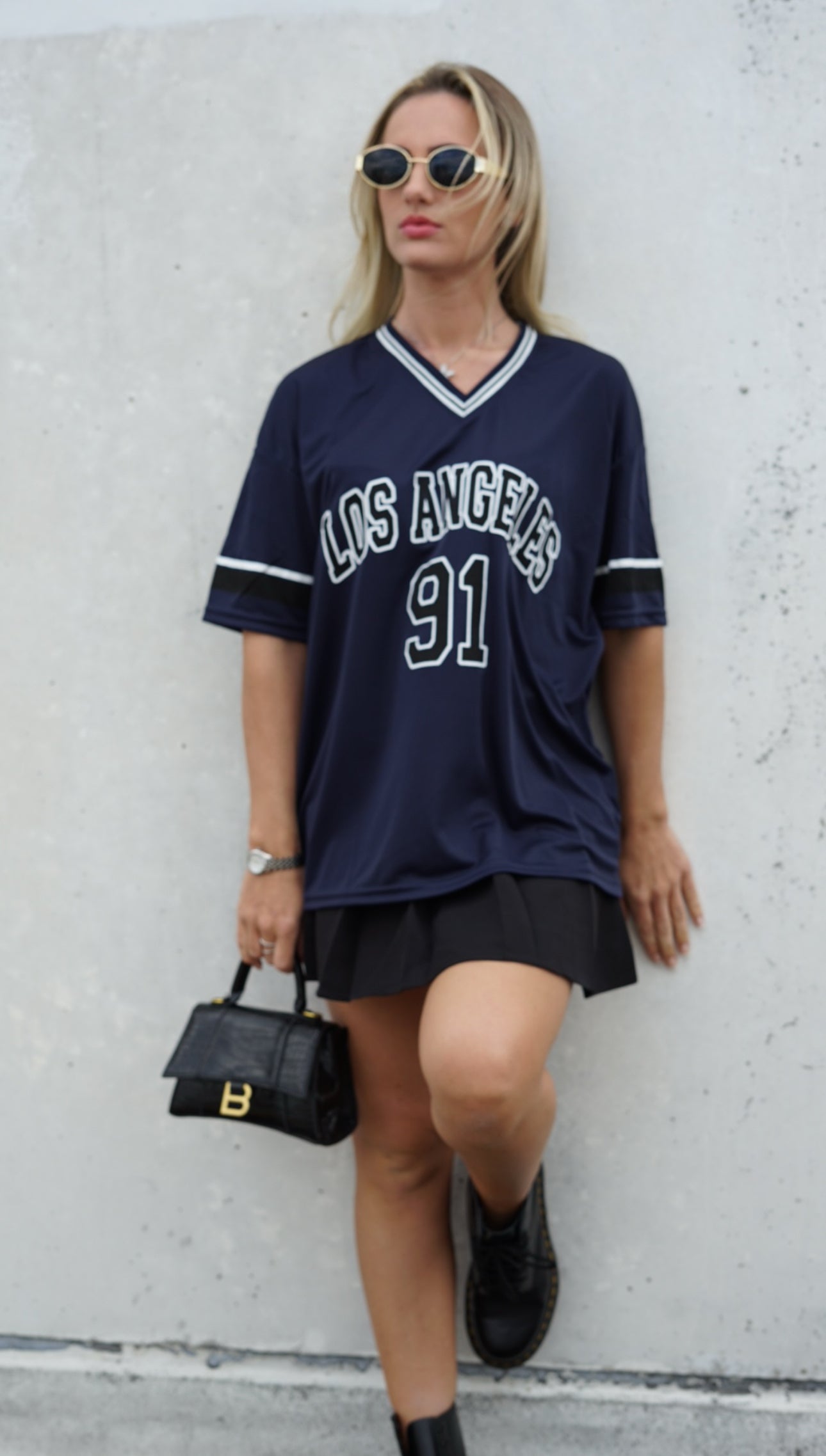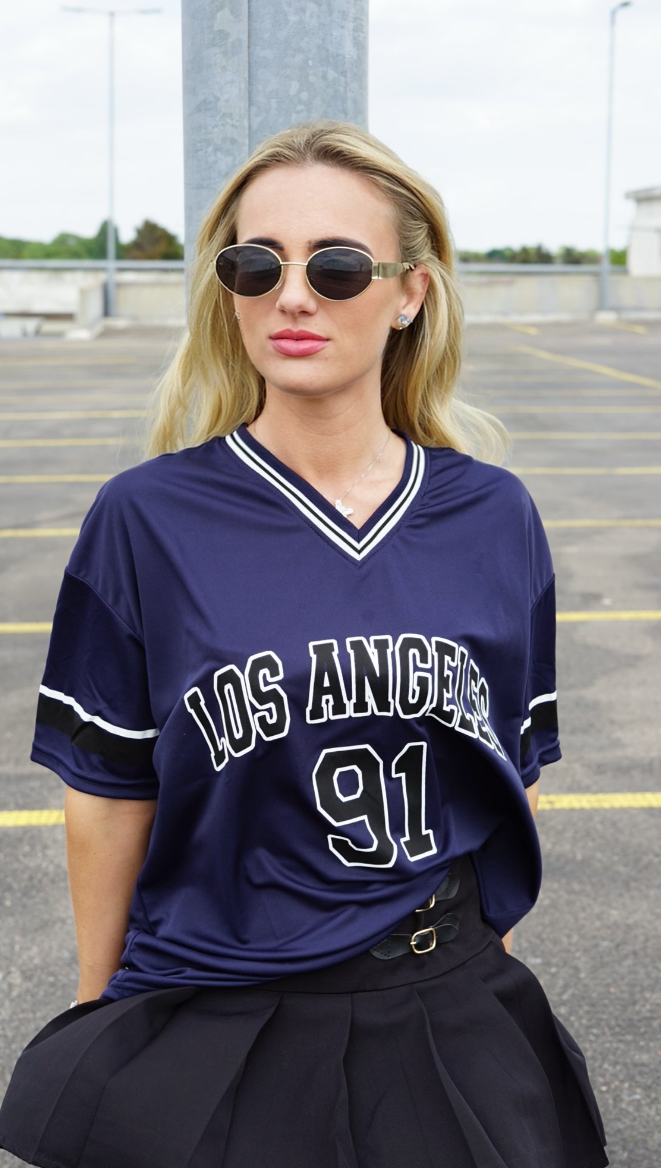 NAVY CONTRAST SHORT SLEEVE LA VARSITY T-SHIRT